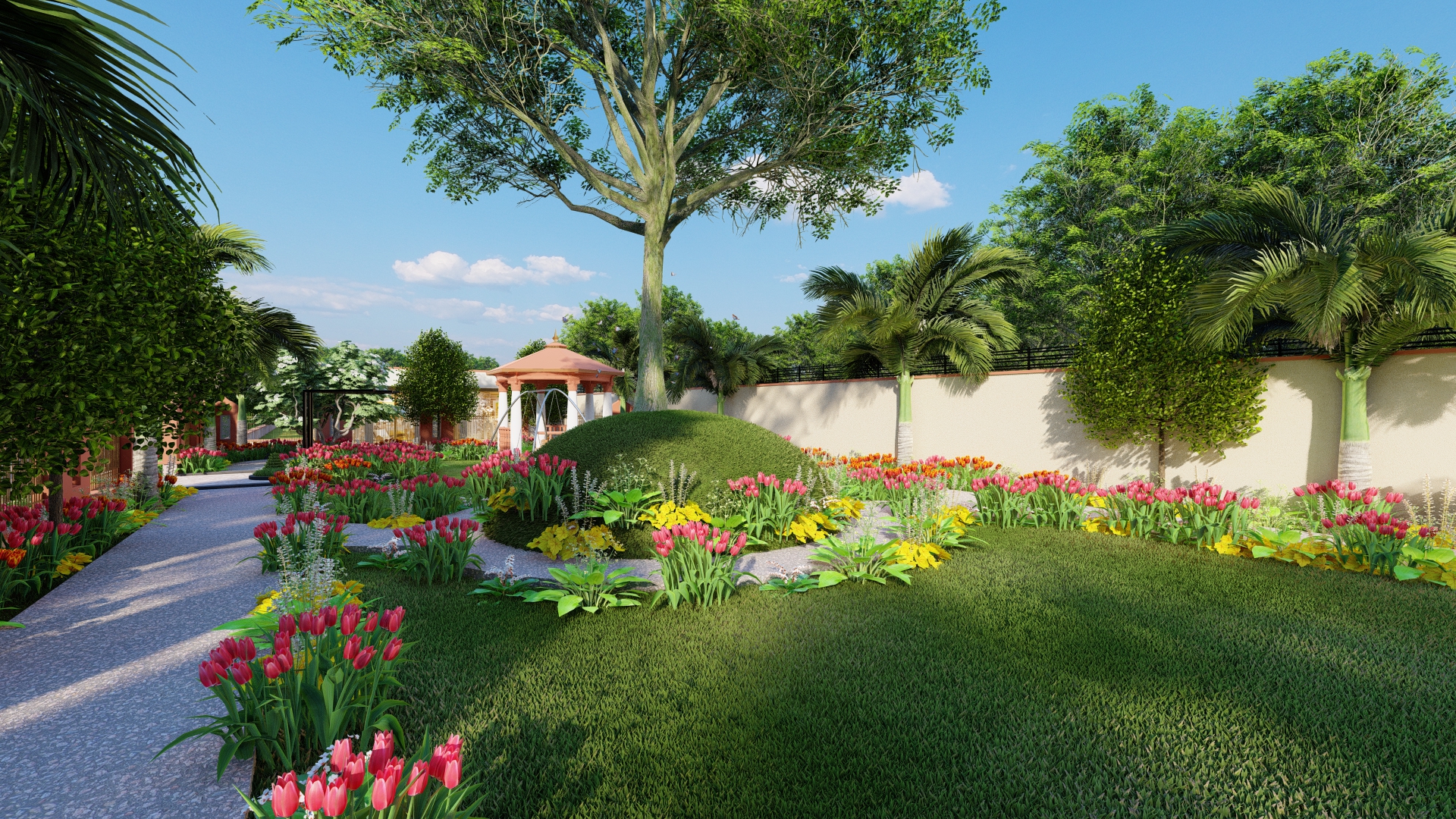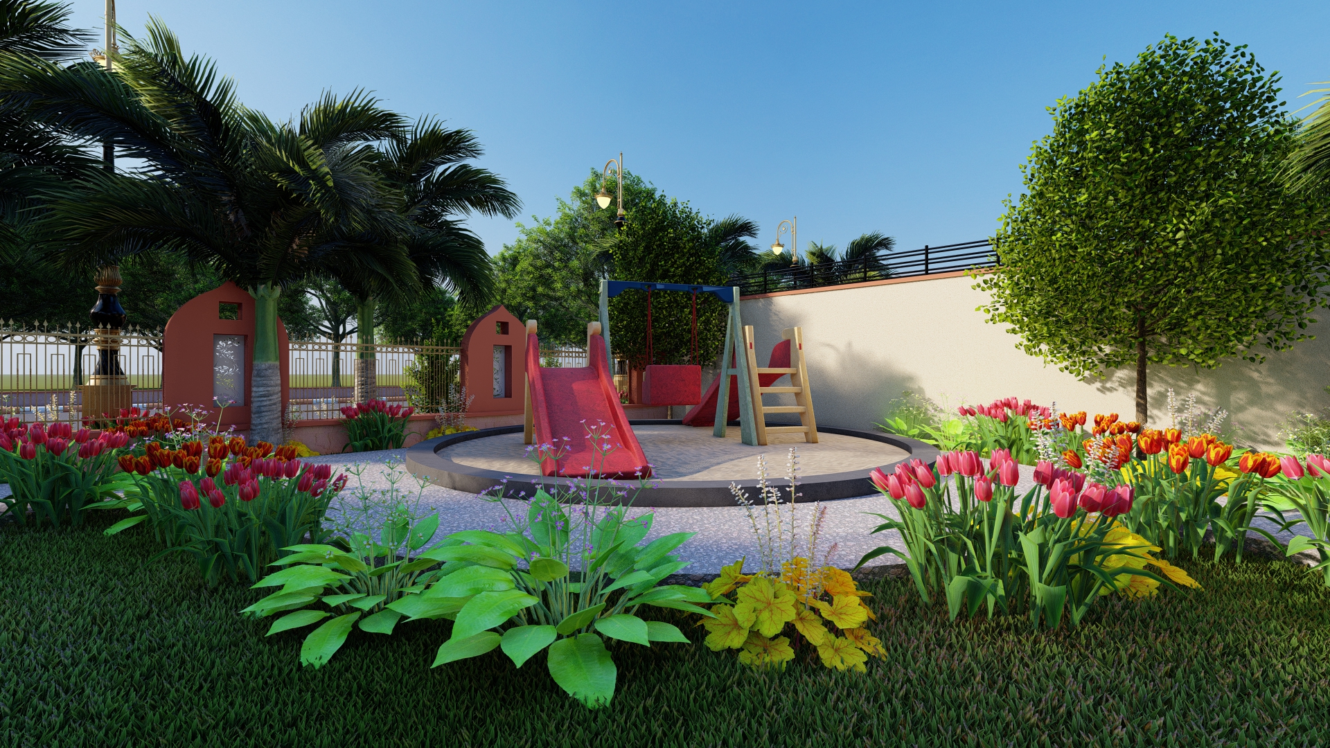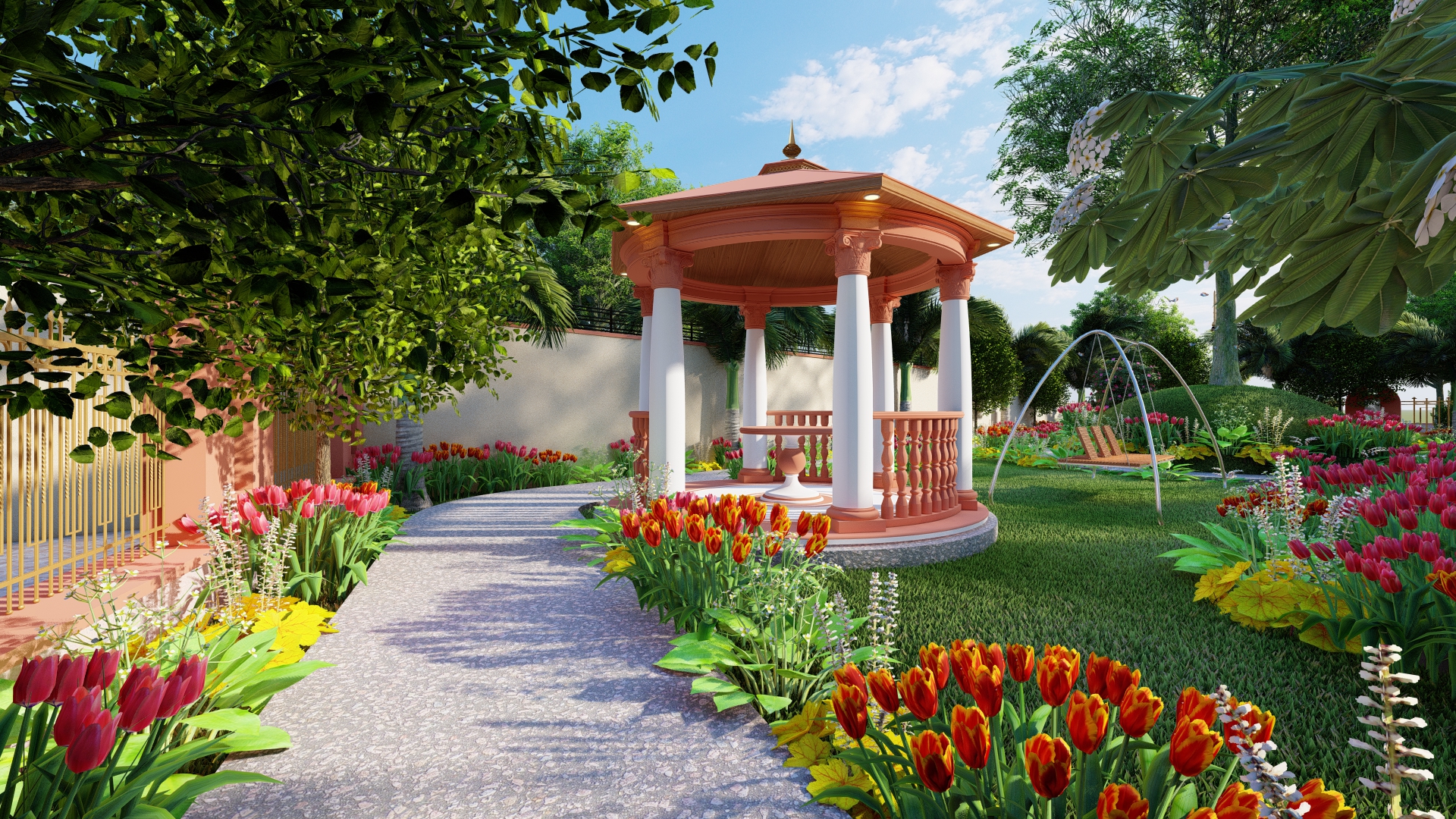Designed to provide a serene and natural environment, the project features lush gardens, tree-lined roads, and dedicated green spaces for a refreshing lifestyle. A beautifully designed gazebo offers a tranquil space for relaxation, while a dedicated kids' play area with swings ensures a fun and nurturing environment for children. To promote sustainability, solar trees have been installed to supplement electricity needs. Every feature of this project has been thoughtfully integrated to enhance the quality of life for residents.
